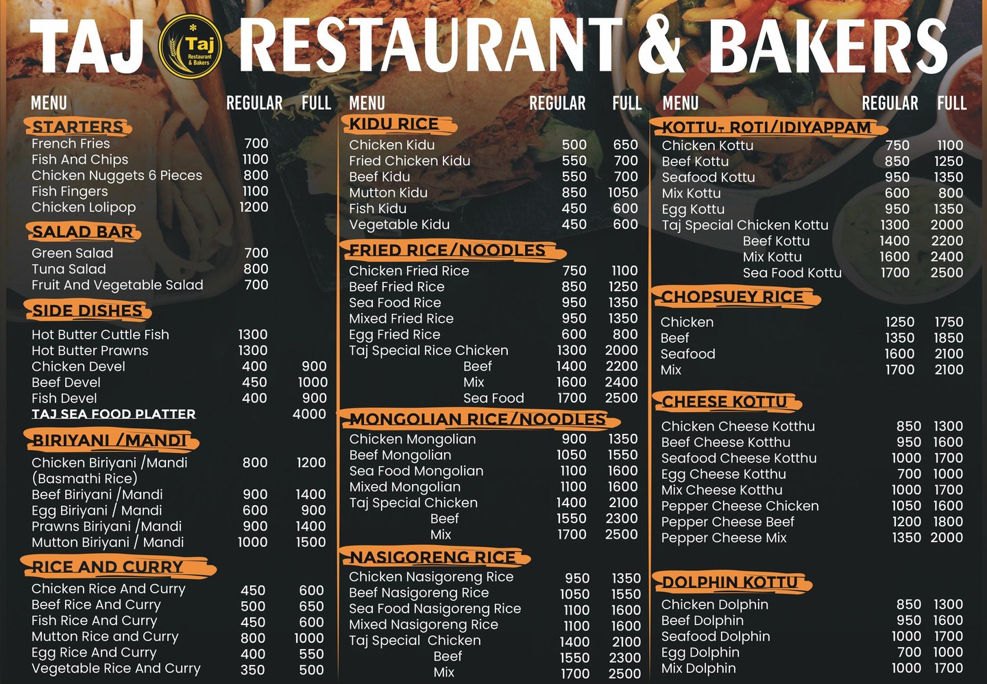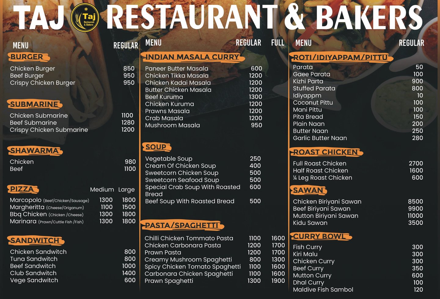 Reserve your table at Taj Restaurant & Bakers for a delightful dining experience.